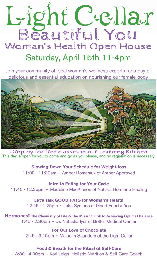 I am a part of the next open house at The Light Cellar on Bowness Road in the NW of Calgary. A full day, free for all, focusing on Women's Health. Some incredible speakers for the day, read the full line up below!