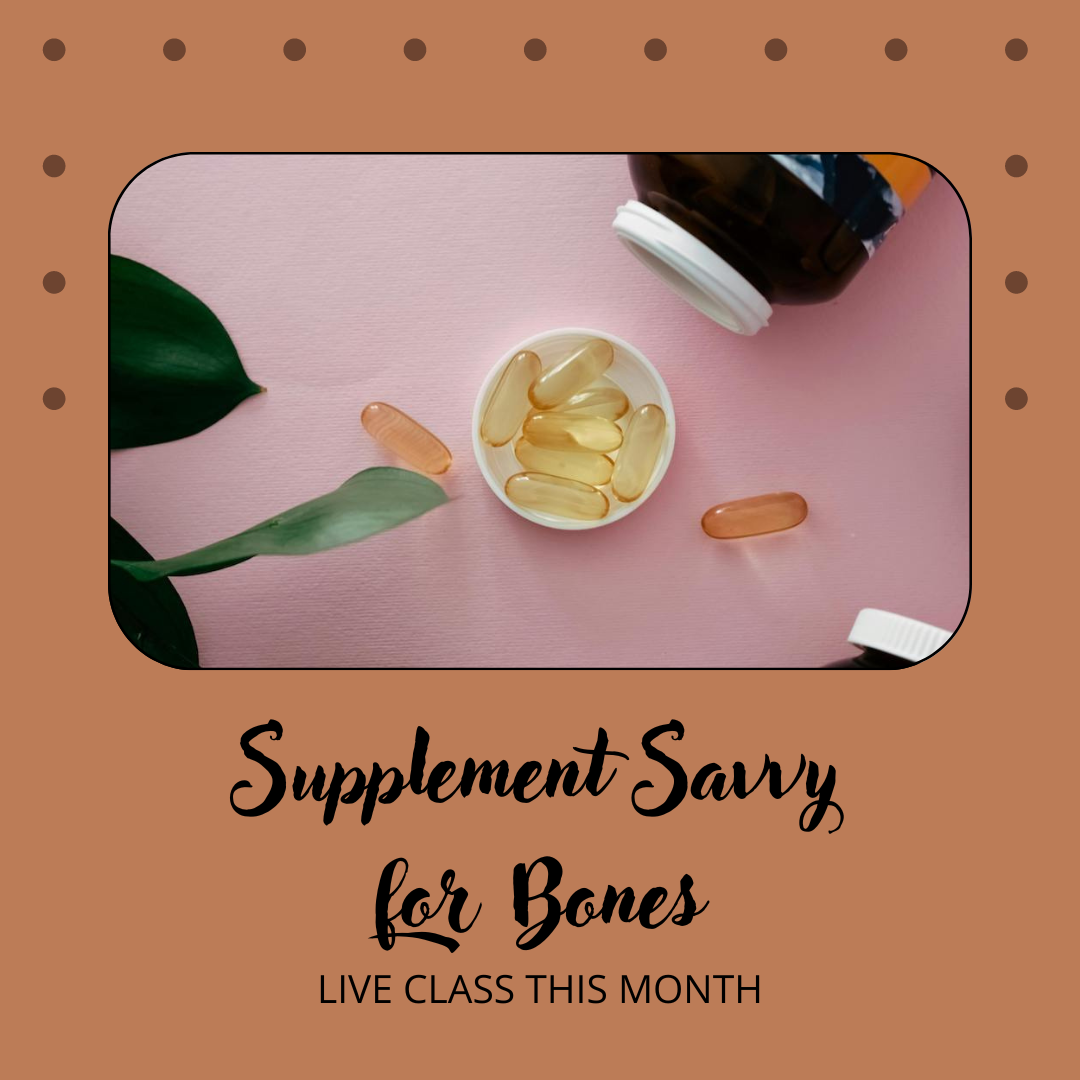 Have you been diagnosed with osteopenia or osteoporosis? Are you eager to support your bone health but unsure where to start? Join us for Supplement Savvy for Bones, a comprehensive class designed to empower you with the knowledge you need to make informed decisions about bone health supplements.