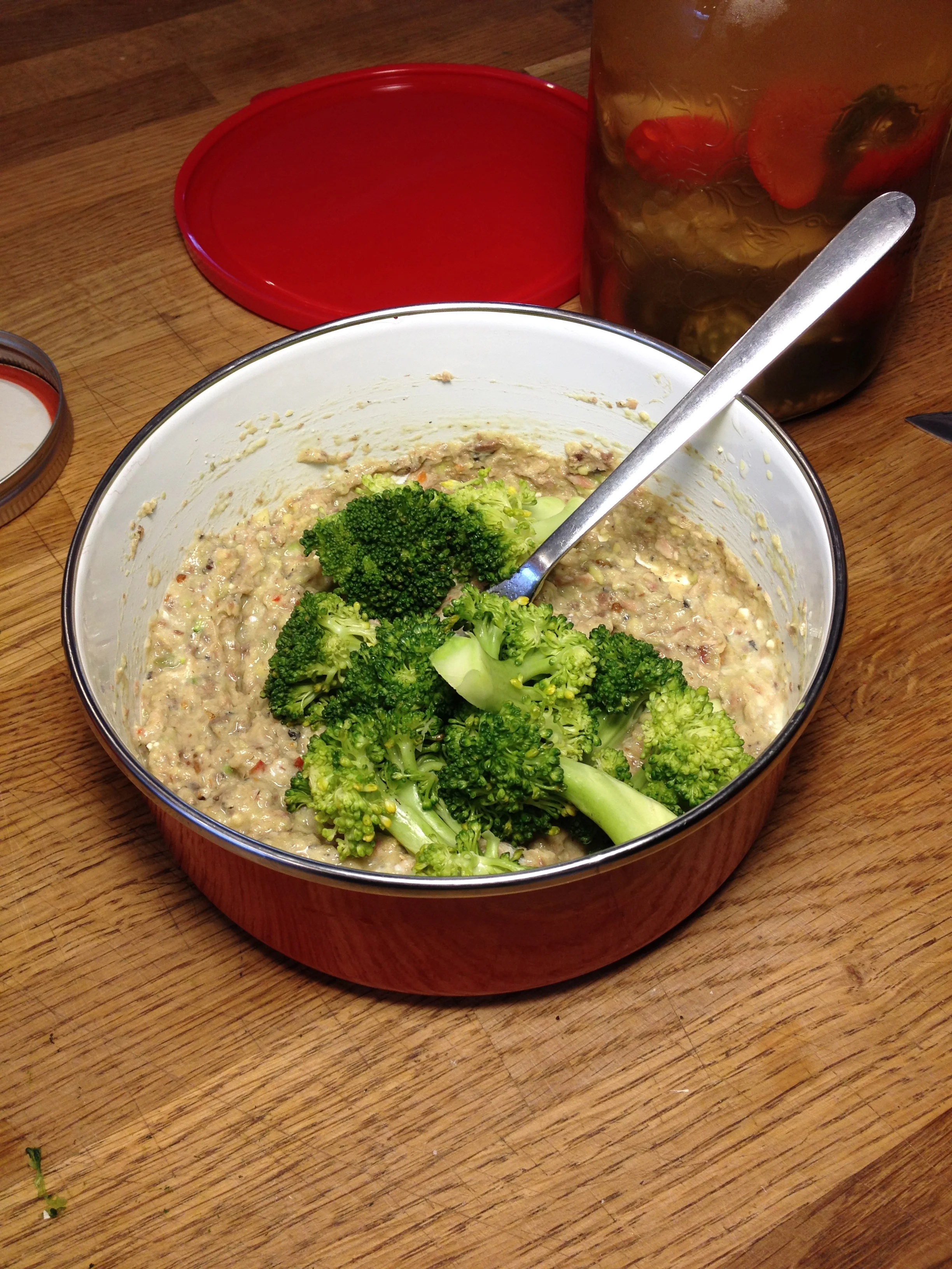 While I was cooking my veggies for breakfast this morning, I put half a head of broccoli in to steam lightly in order to lessen the goitrogens (thyroid-supportive thing in my case). I always keep a stash of these Raincoast Trading sardines in spring water for days like this; I like these because the cans do not have BPA in the lining, and the fish are stored in simple spring water, there are no additives. Thanks to a former colleague Ray I got turned on to sardines: he said they're the original tuna salad! I tried them and thought well yes now they are. Sardines are lower down the food chain, and much smaller than tuna; the mercury and other heavy metal concentrations in the little guys are significantly lower than that found in Tuna, being a higher-up-on-the-chain kinda fish.