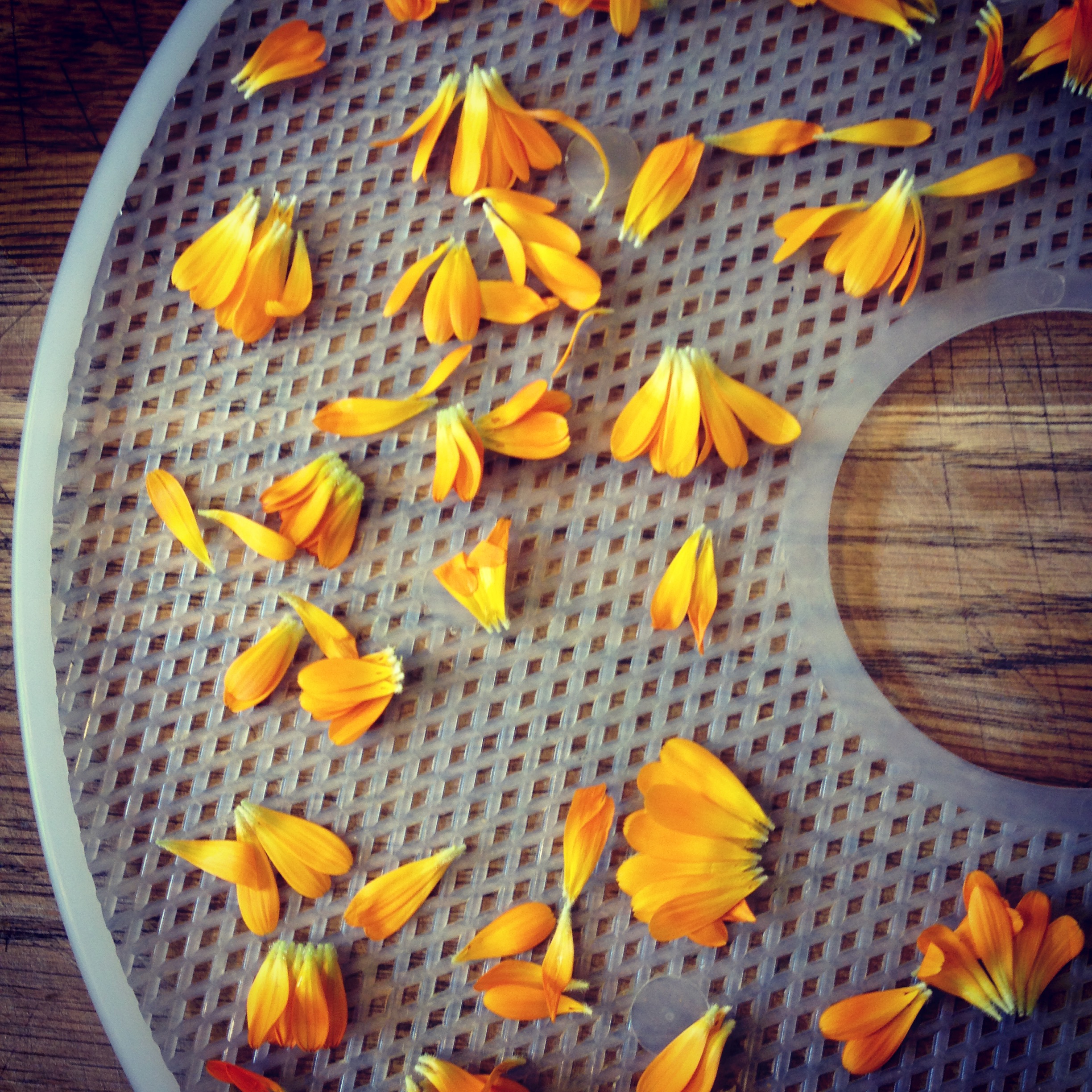 Calendula petals destined for the dehydrator. #harvest2015