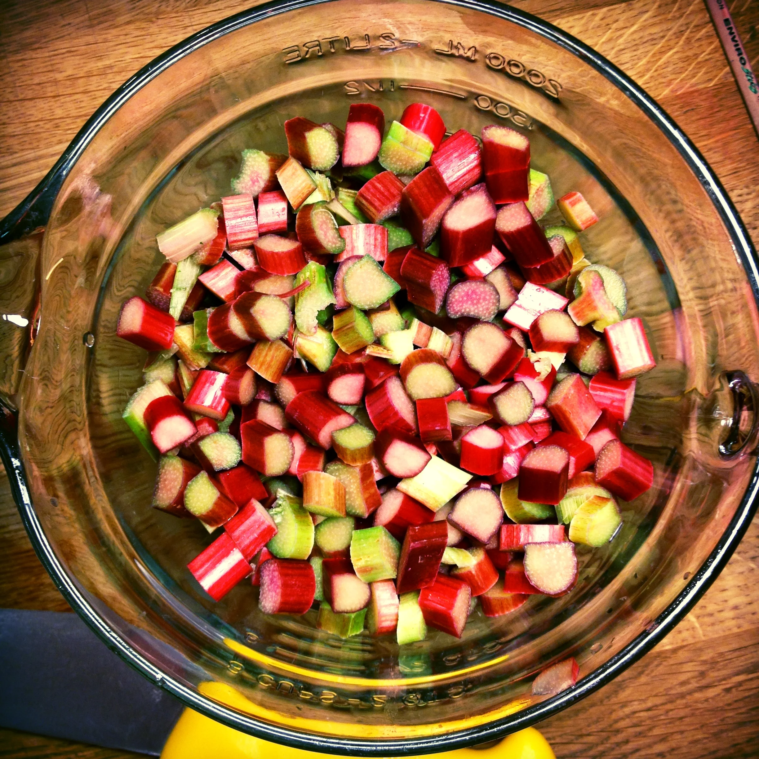 Today is a good day for a harvest picking. It's also a good day for a BBQ. So let's harvest and make a BBQ sauce for said BBQ day, yes? But not just any kind of BBQ sauce, one using ingredients that are plentiful this time of year as a way to preserve that goodness. Enter, the humble rhubarb stalk and ye delicious tart apple from yonder tree.