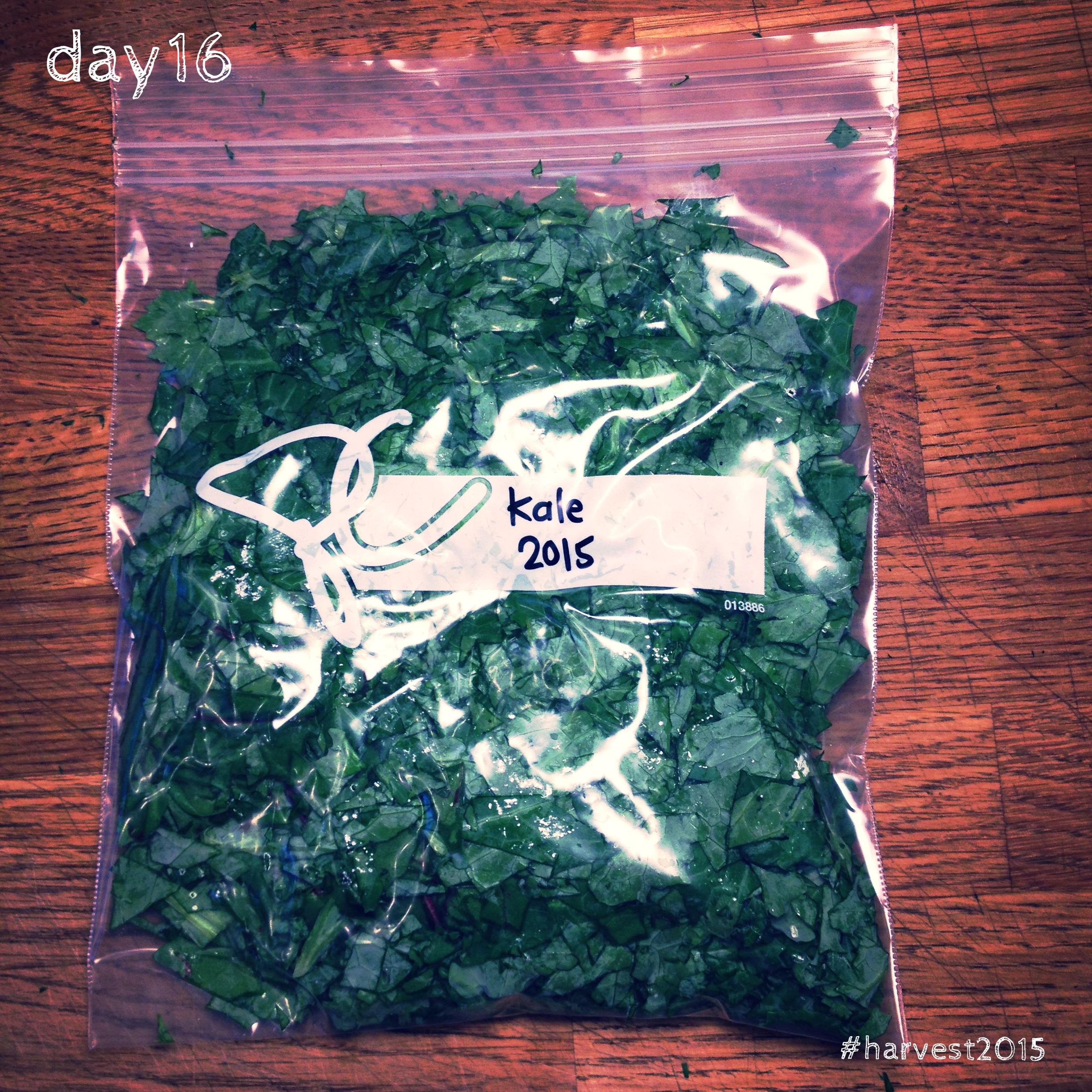 Finely chopped kale and one measly little chard leaf, destined for the freezer. #harvest2015
