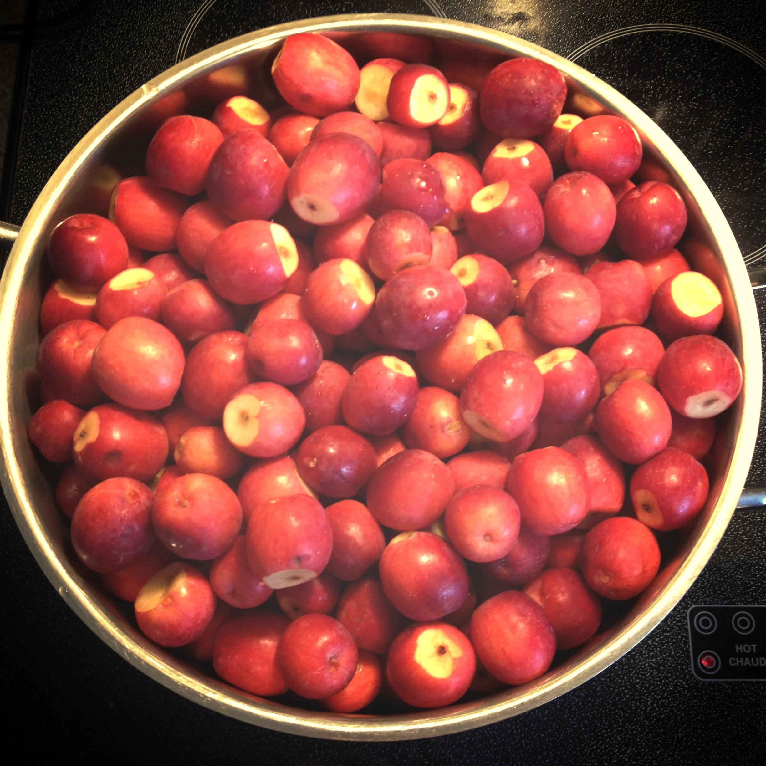 Today is the last instalment of putting up the harvest for 2015. I have enjoyed this challenge of coming up with new ways to keep the freshness going into the winter months, tried new things, revisited old favourites, and so I thought to end this stretch of food-prep that I would go back to one of the first things I ever did as a homesteader-wannabe: canning. I haven't talked about canning this month at all because truth be told, I don't do it much anymore. I find it is quite a bit of extra work, my stove top is not the best one rated for water bath canning; it isn't as forgiving an art as say, fermenting. But it is a practical way to be able to put up a big amount of one thing like zucchini into relish, or peaches into canned jewels, or tomatoes into salsa. And crab apples into crab apple butter.