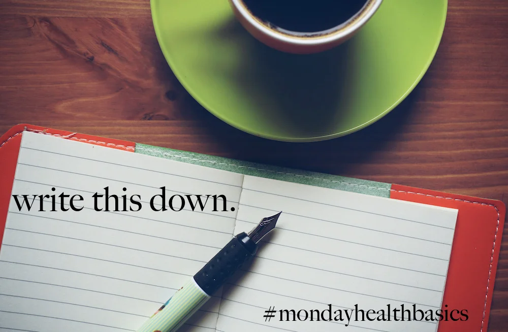 If today is the first time you've taken a gander at one of these Monday Health Basics posts, then you're in luck. It's the perfect place to start. It is, perhaps, where I should have started back in January earlier this year. See, this series of ideas I have been posting to the blog every Monday in '16 is meant to serve as a jumping off point for anyone looking to improve their own health, one building block at a time. And today's spot is the perfect place to begin. Write this down.