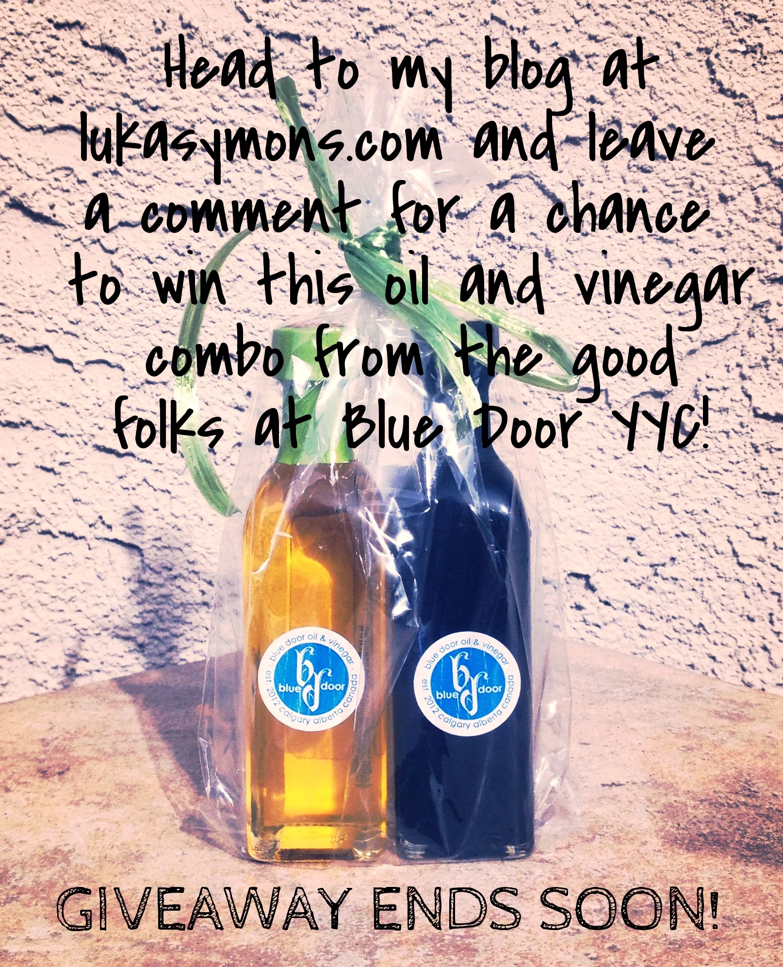 What she said. Head to this blog post and leave a comment, after the recipe for a most delicious salad dressing made with top shelf quality olive oil and zingy white balsamic vinegar from the good folks at Blue Door Oil & Vinegar. You have until this Friday at midnight to enter in the contest! Hit 'Share' below to send this along to someone you think may love to add some yummy flavours to their kitchen toolkit. Thanks, friends!