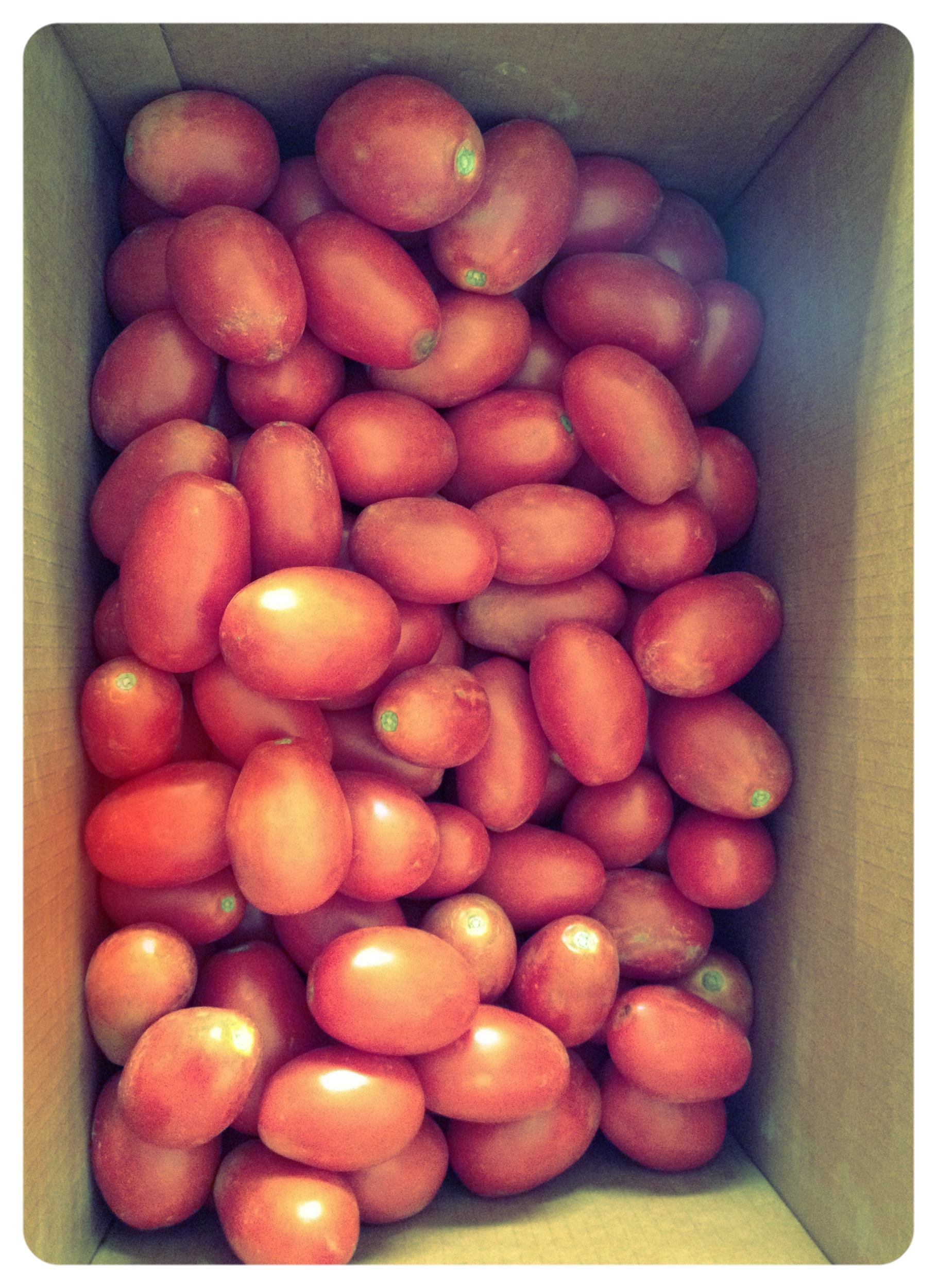 On the weekend, I had the good fortune of a large vehicle with lots of loading potential (read: fresh fruit and veggie haul). I spent the weekend in the Shuswap, running away from the frost threat in Calgary and visiting family, hanging by the beach, and visiting my favourite local fruit stands in search of a good deal. So haul I did. I brought back 80 pounds of roma tomatoes, 10 pounds of organic peaches, 5 pounds of locally grown blueberries, a few bundles of locally grown organic beets, a carton of fresh plums, some this-year's-apples and many-a-bag of fresh basil. That was just my order, never mind a few friends' that went in to the back of my red van.