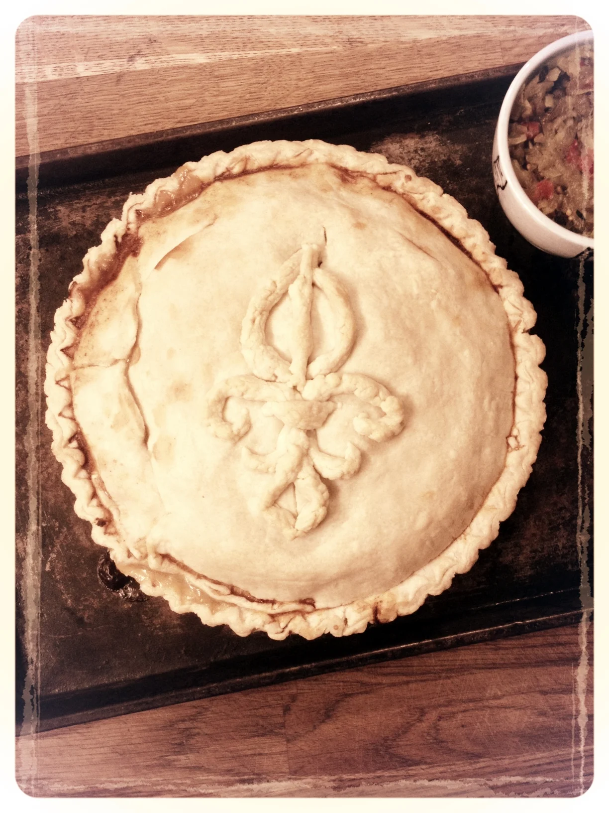 *And truly, this being 2015 and in the spirit of sanity, I opted to use a store-purchased pie shell. I found a quite clean version in the freezer at my favourite local Health Food Store I felt ok using, from Wholly Wholesome. Straight up ingredients: organic wheat flour, organic palm oil, water, organic cane sugar, sea salt. My adrenals were requesting a free hall pass for this one. I obliged.