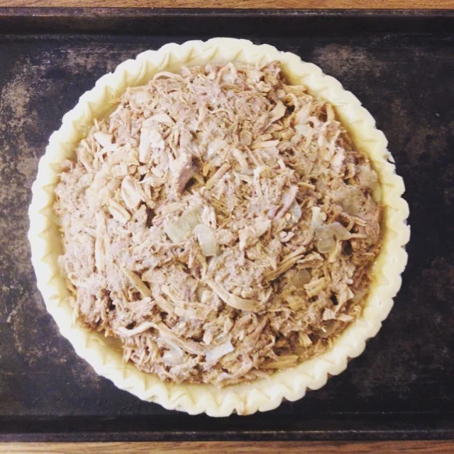 Tourtière is a traditional French-Canadian meat pie, and most would be familiar with the version made out of ground meat, either a combination of meats or one single type of ground. My dad has gotten into making a ground chicken version these last few years; I refuse to veer away from the ones that were regulars in my childhood. Call me sentimental, call me old school, I just love this version so much better. If done correctly and with enough time to allow the meat to mellow, it just Melts. in. Your. Mouth. The Acadian version uses stew meat instead, 1 part beef to 2 part pork. Onions are also added late in the game. It's really quite a simple process, and one I continue offering in tradition to my family at this time every year.
